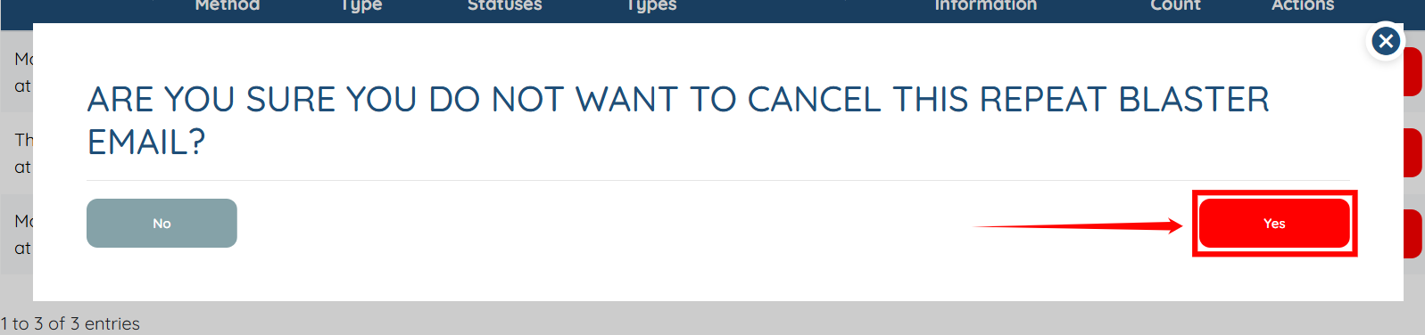 Step 4: Click the Yes button to proceed. This action will successfully cancel the selected scheduled blaster.
