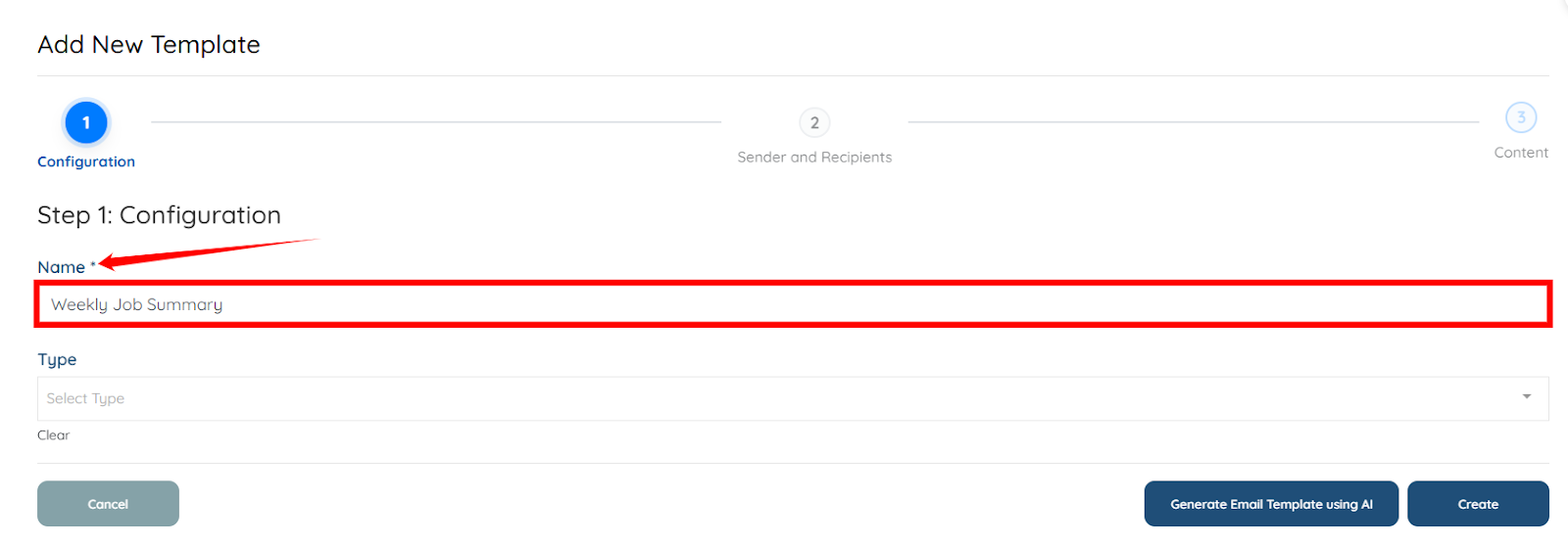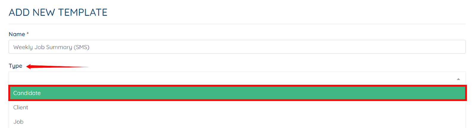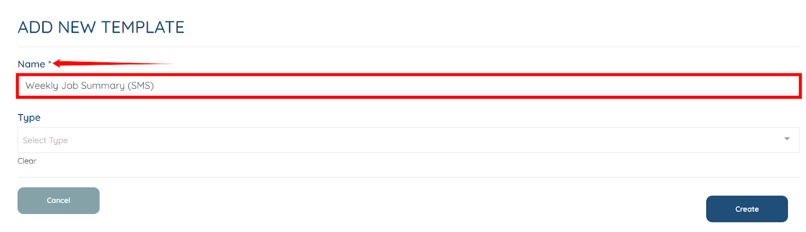 Step 3: Enter a name/label for the template for your reference. For example, Weekly Job Summary (SMS).