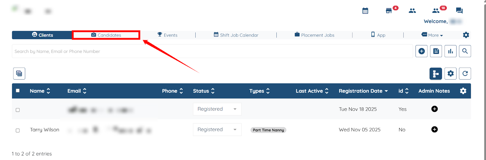 Step 1: On your agent dashboard, click the Candidates option in the top navigation bar.