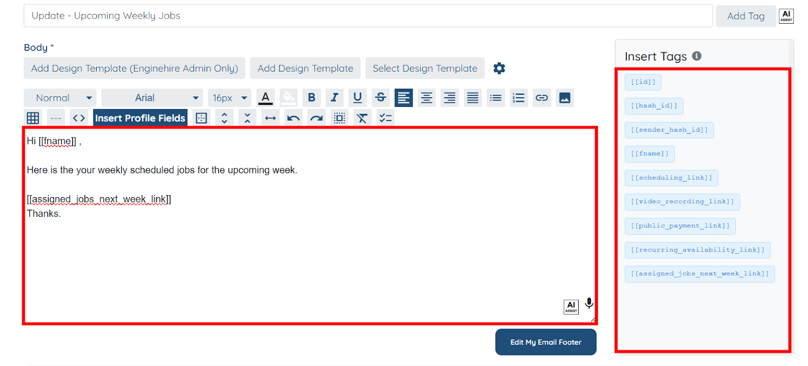 Use the steps below to schedule the weekly assigned job summary using the email blaster you created in the Use Repeat Email Blaster section.