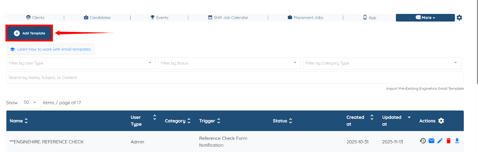 Step 2: Click the Add Template button to begin adding a new template.