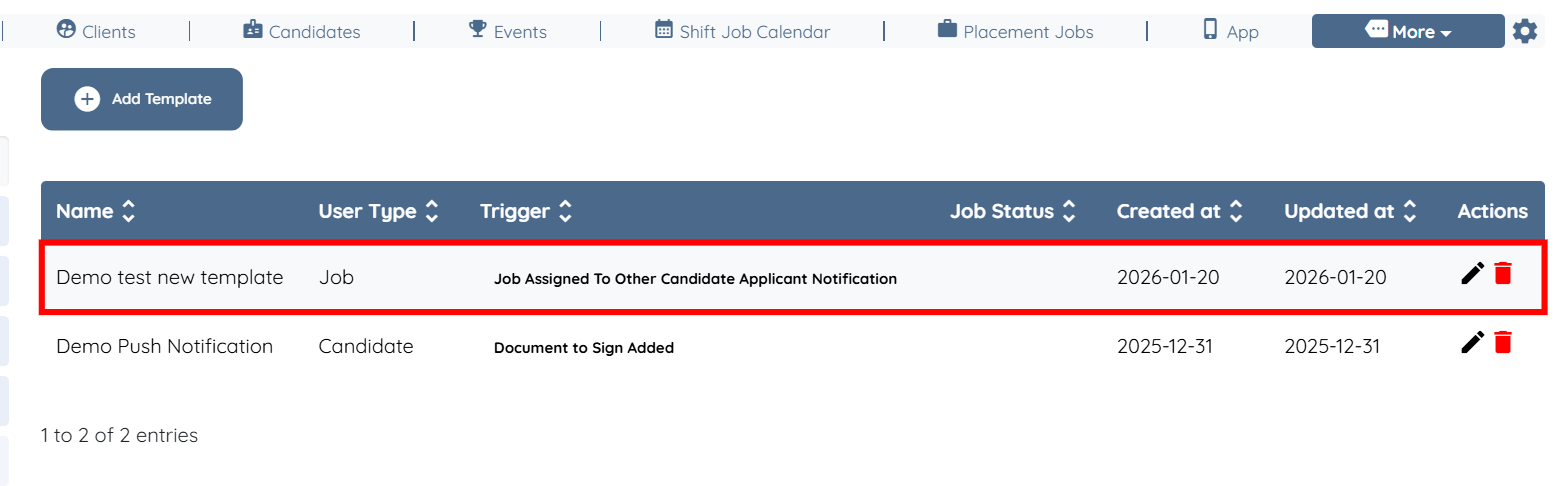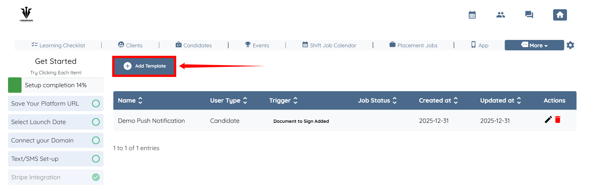 Step 2: Click the Add Template button to begin adding a new template.