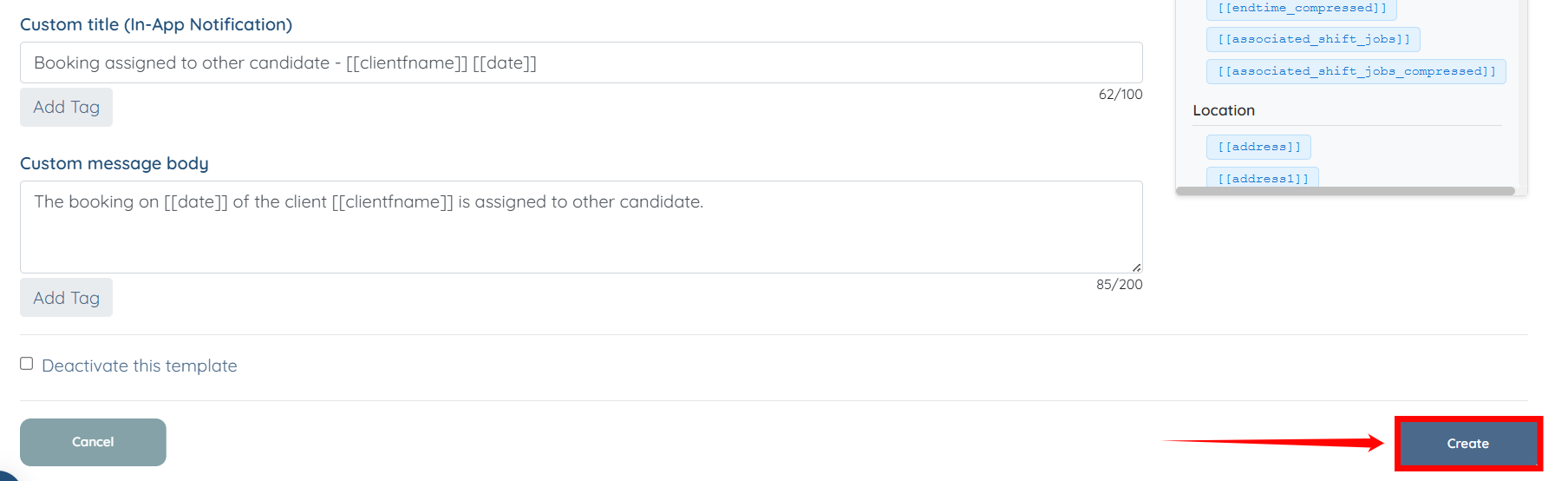 The push notification template will be created successfully by using the Customize in-app notification details option.