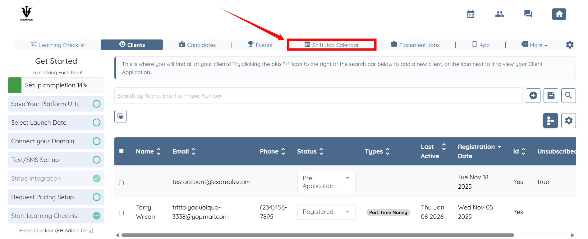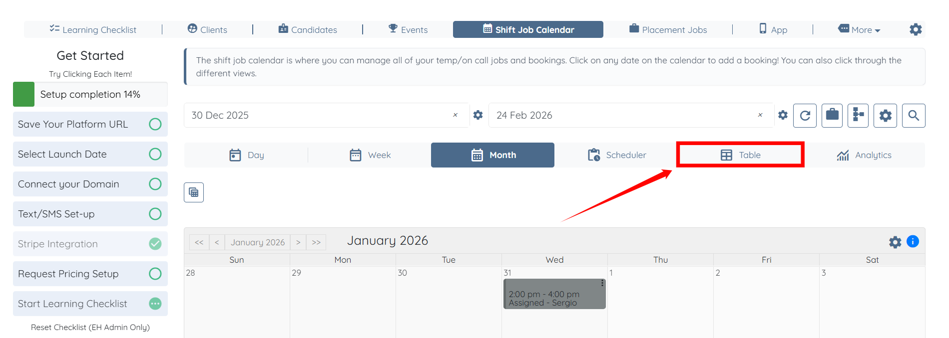 Step 1: Log in to your agent dashboard, then click Shift Job Calendar in the top navigation bar.