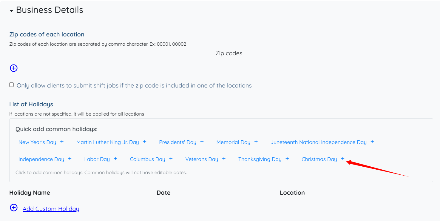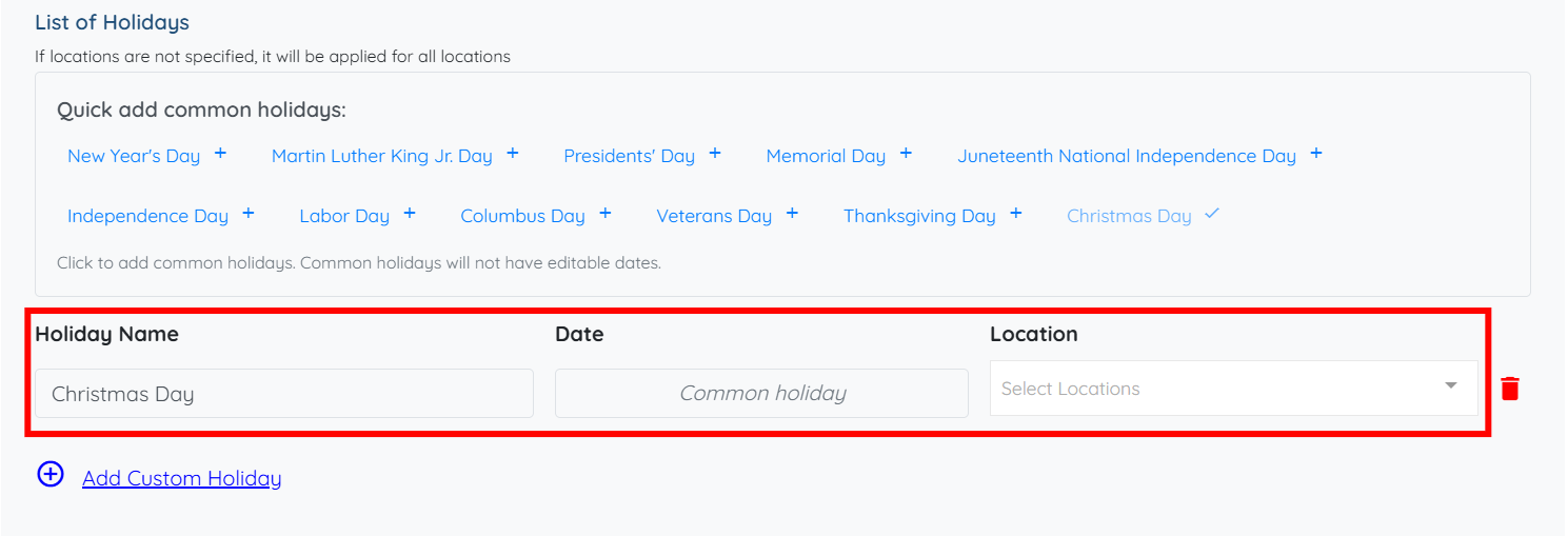 Step 4: From here, you can quickly add any holiday(s) from the available list by simply clicking on the desired option.