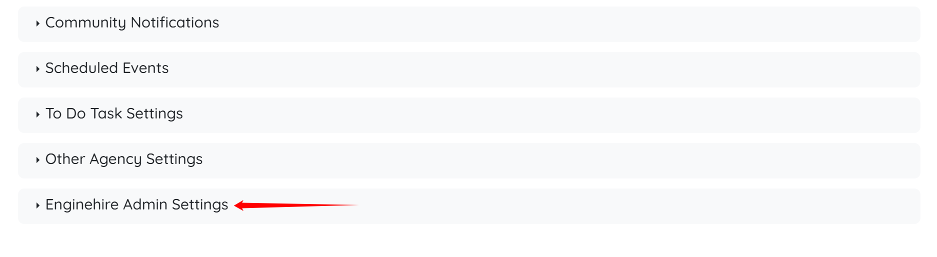 Step 3: Scroll down and click Enginehire Admin Settings to expand it and view the details.