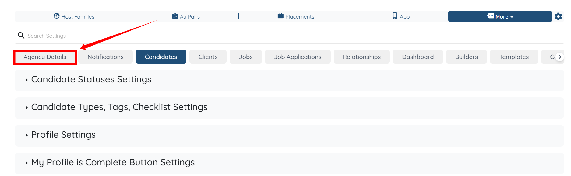 Step 2: From the available tabs, click on the Agency Details tab.