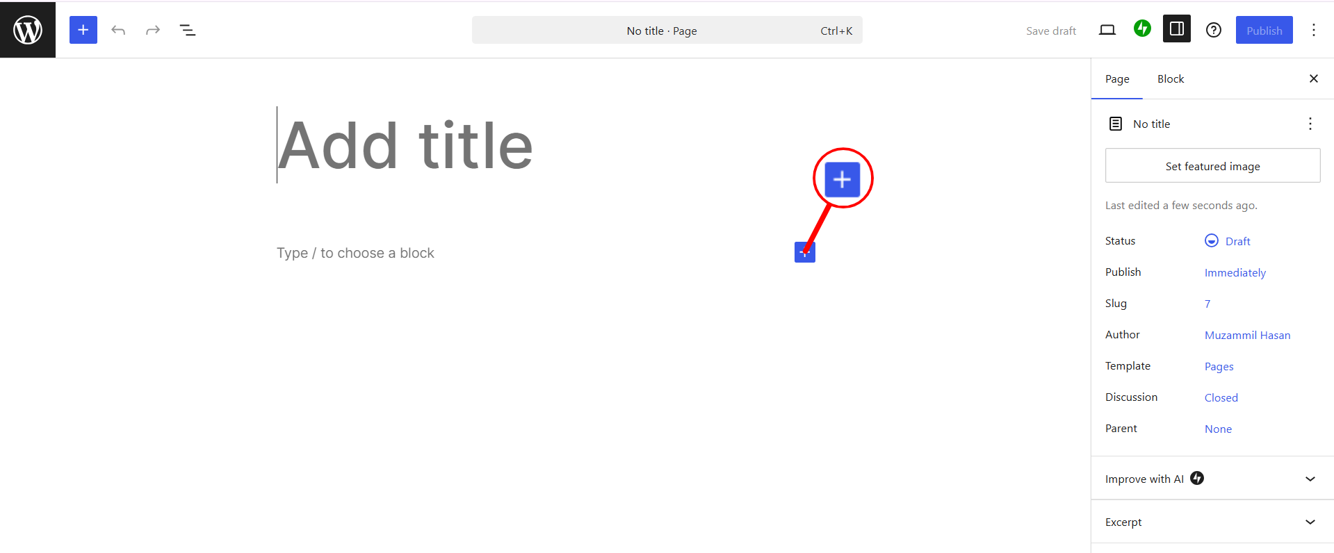 Step 6: Click the + button to add a new block.