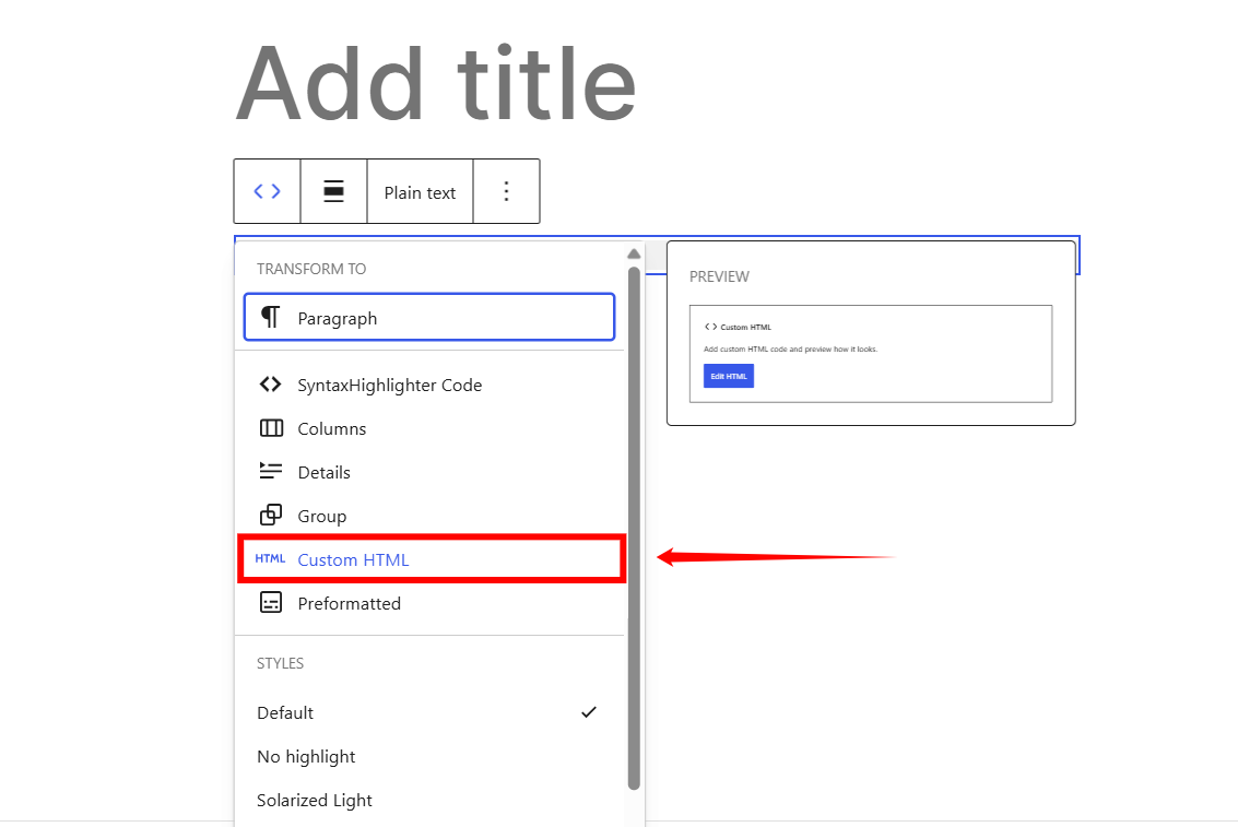 Step 9: Click the Custom HTML option.