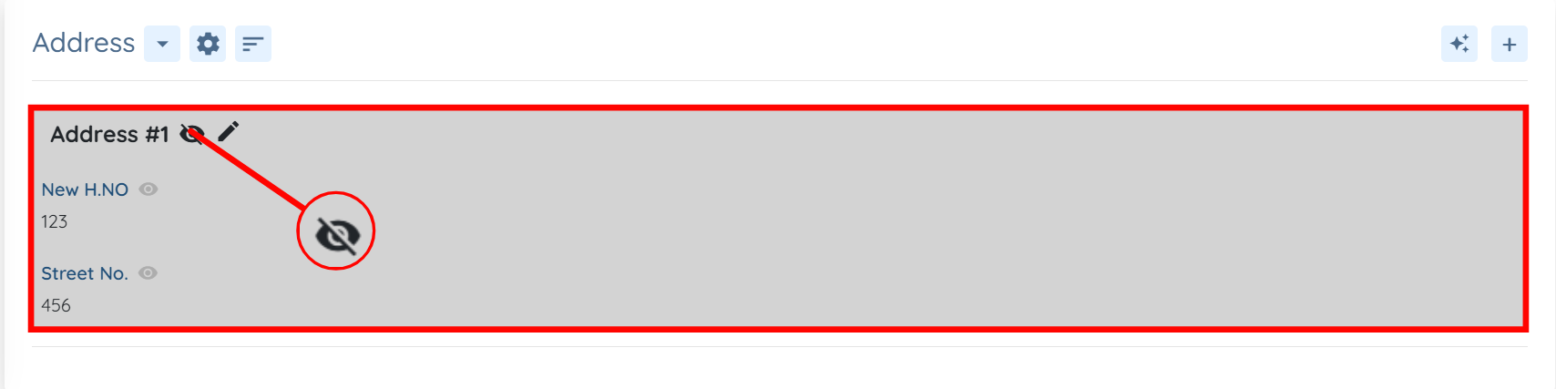 Once hidden, the eye icon changes to a strikethrough eye, and the address row appears grayed out.