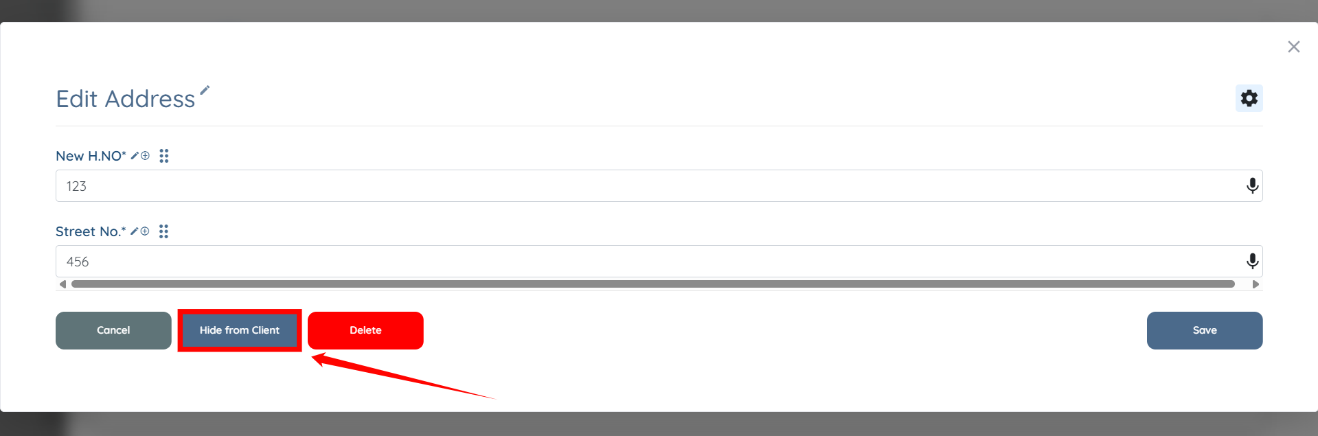 Step 5: To make the address visible again, click the pencil icon (as in Step 3) and click Show to Client button.
