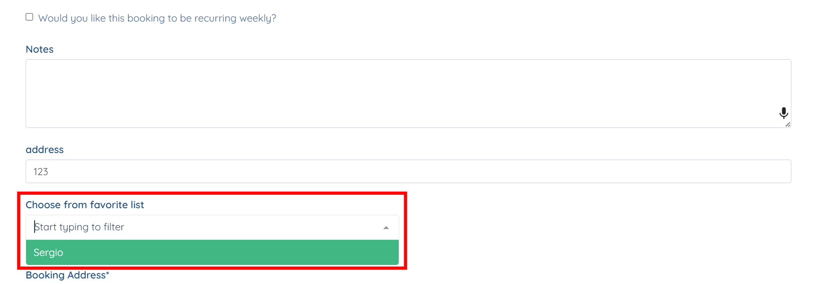 Clients can select from their favourite candidates directly within the Booking form for more precise booking control.