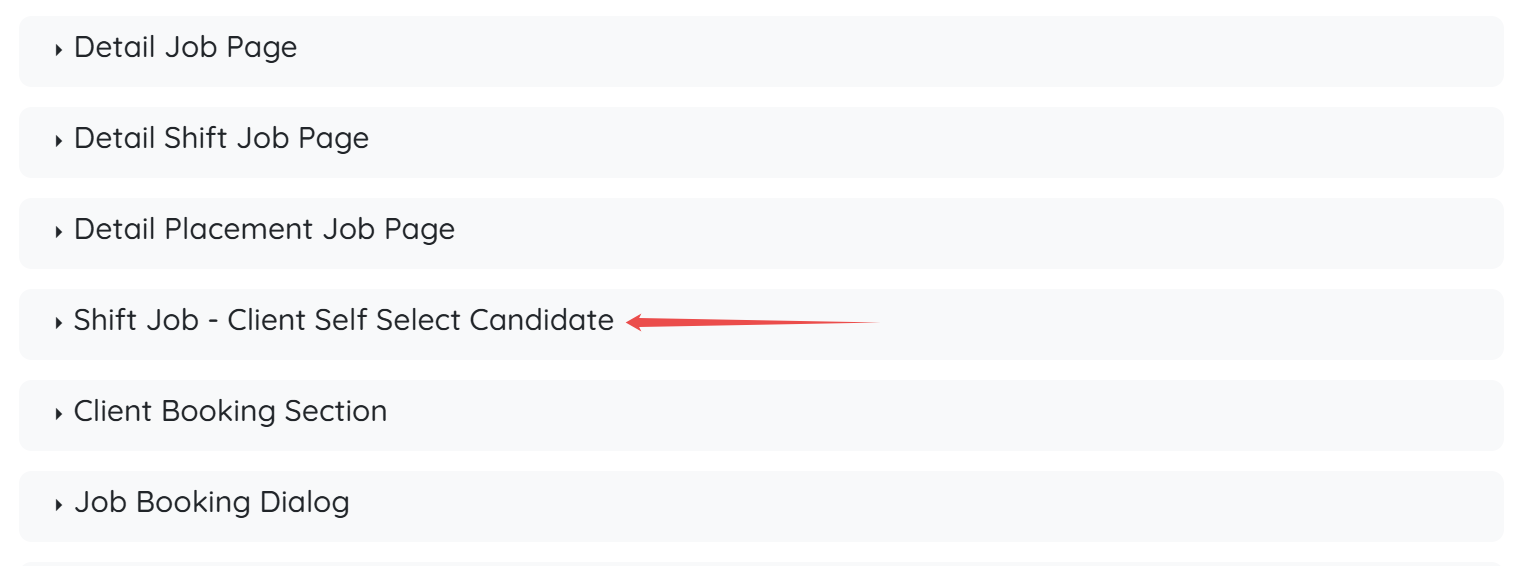 Step 3: Scroll down and click the Shift Job - Client Self Select Candidate option to expand it and view all its details.