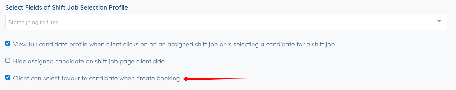 Step 4: Check the Client can select favourite candidate when create booking checkbox. The settings will be saved automatically.