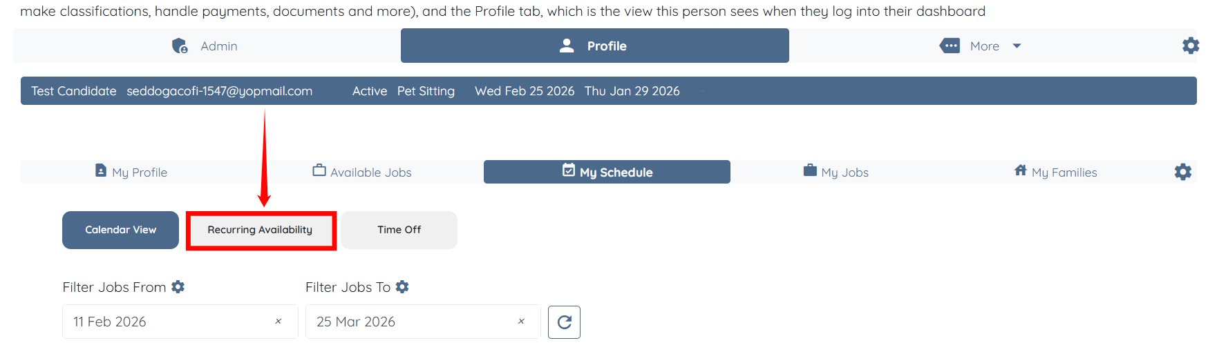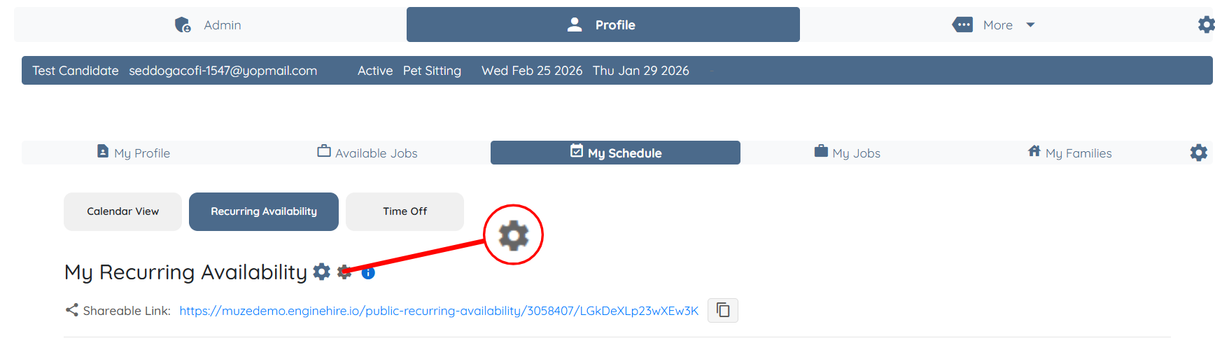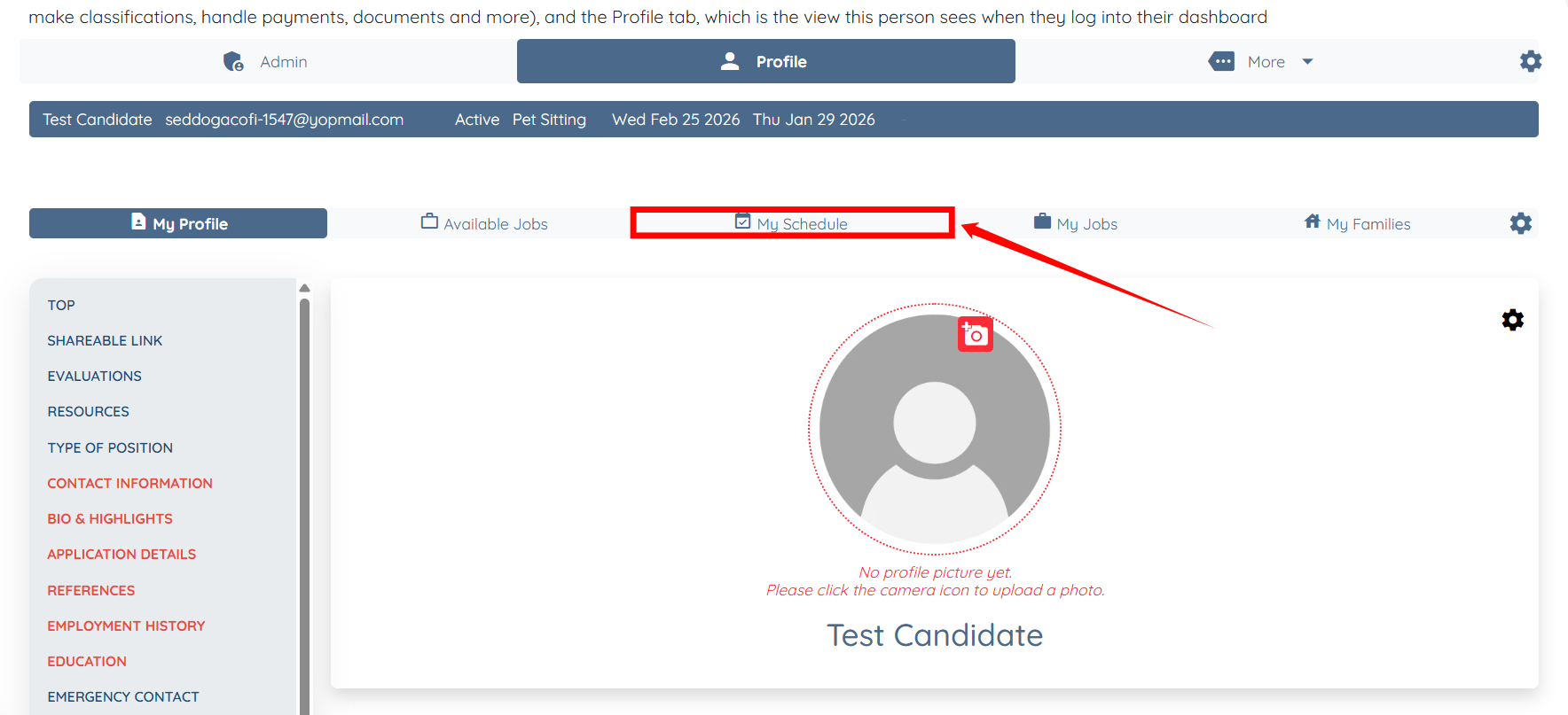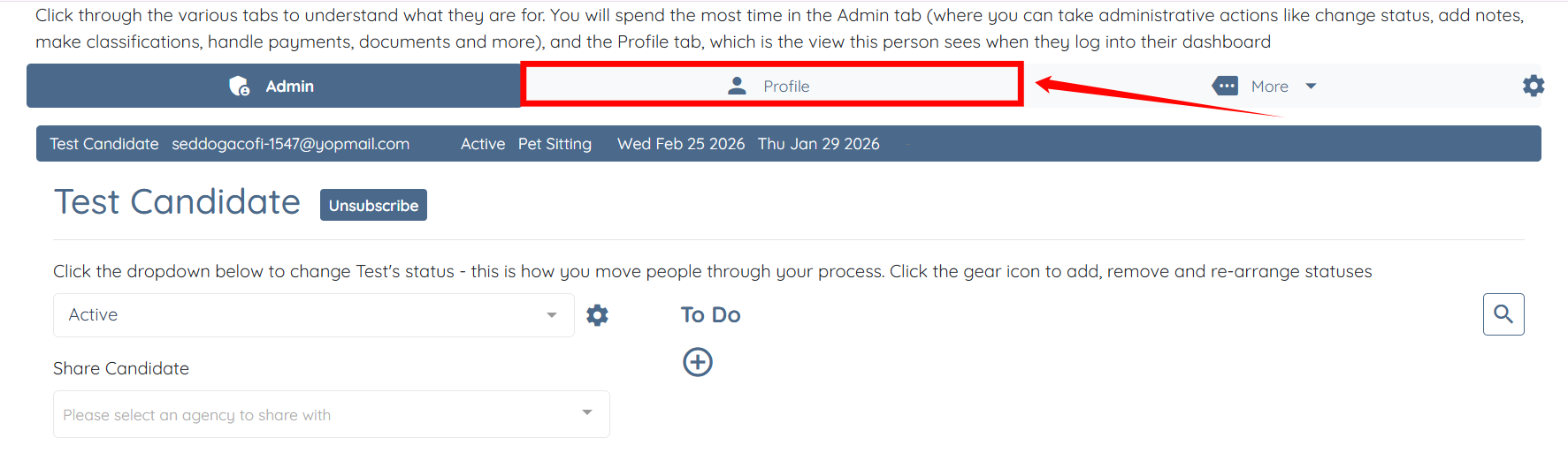 Step 3: Click the Profile tab to navigate to the candidate profile.