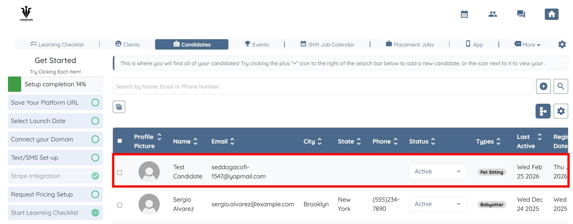 Step 1: Log in to your agent dashboard and click Candidates in the top navigation bar.