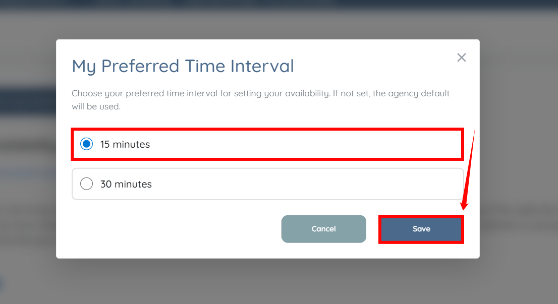 Step 7: Choose your preferred time interval and click the Save button to confirm your preferences.