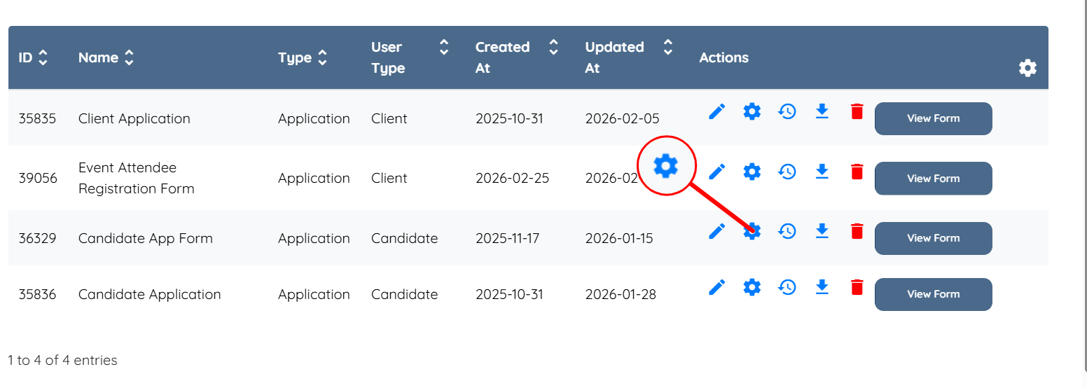 Step 4: Click the gear icon corresponding to the application builder from which you want to exclude the location question.