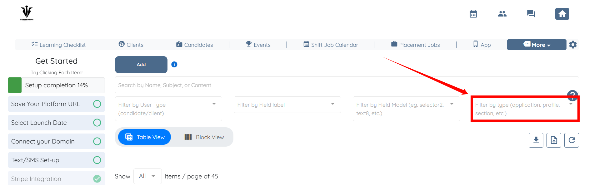 Step 2: Click the “Filter by type” box to activate the dropdown list.