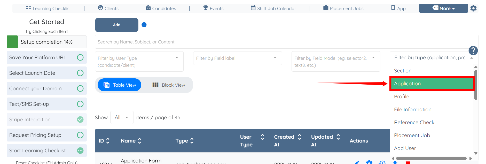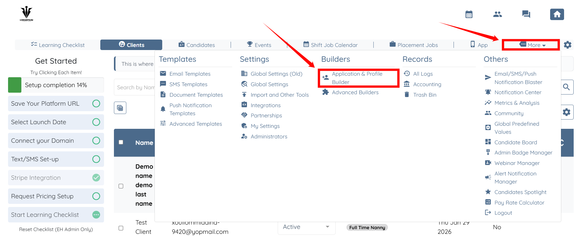 Step 1: Log in to your agent dashboard and click More > Application & Profile Builder as shown in the screenshot below.