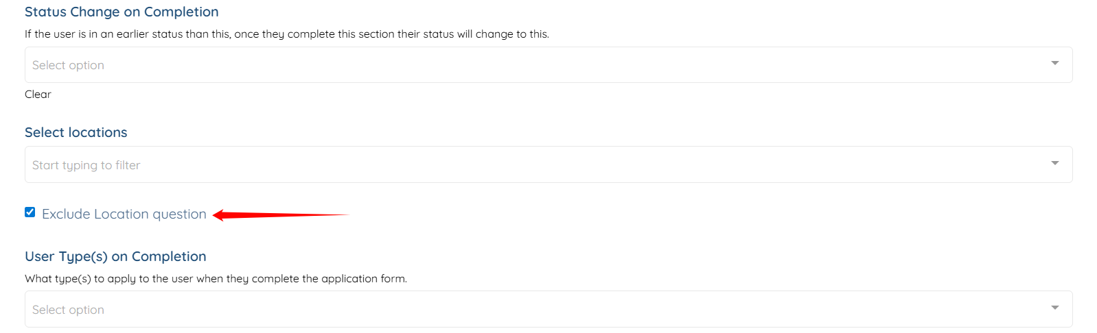 Step 5: Scroll down and check the Exclude Location Question checkbox.