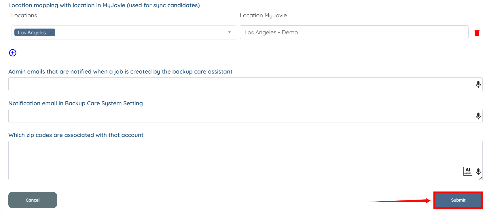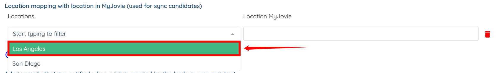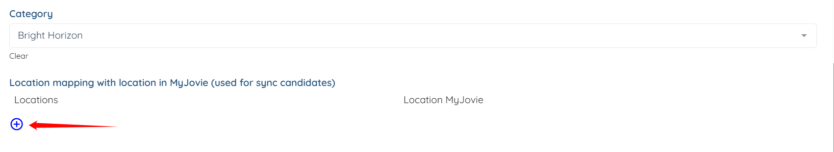Step 5: Scroll to the Location mapping with location in MyJovie (used for sync candidates) option and click on the plus icon to add a new mapping.