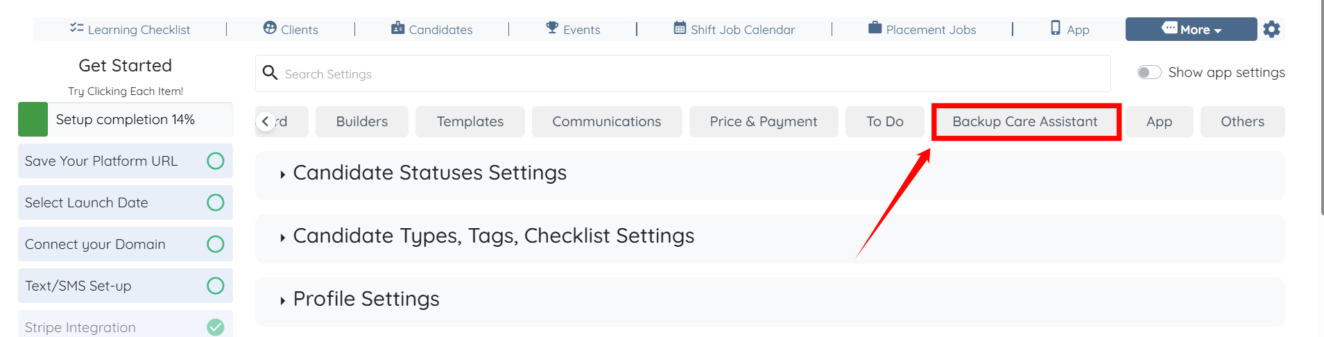 Step 2: Scroll the tabs to the left and click the Backup Care Assistant tab.
