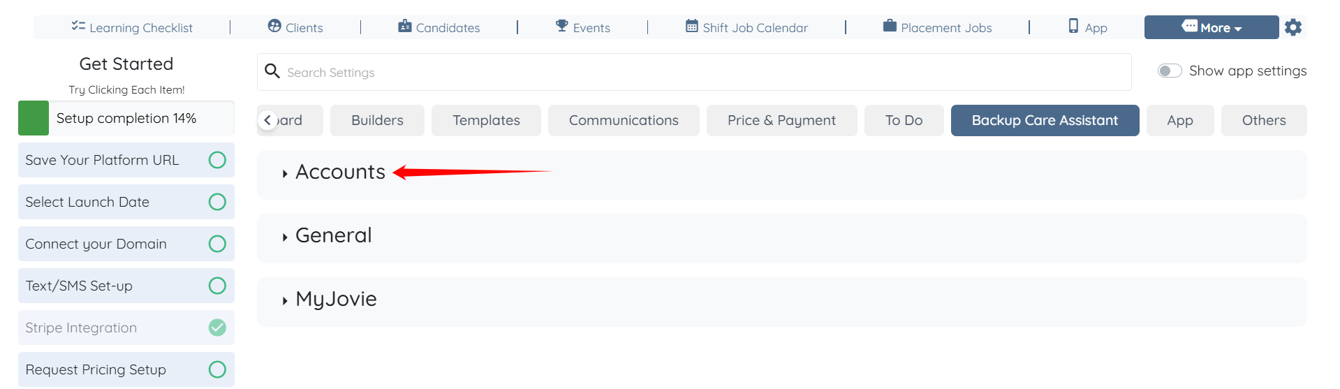 Step 3: Click the Accounts option to view the connected MyJovie accounts.