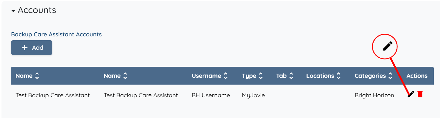 Step 4: Click the pencil icon under the Actions column for the account where you want to configure the location mapping.
