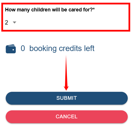 Step 8: Select the child or children who require care, then tap SUBMIT to create the booking.