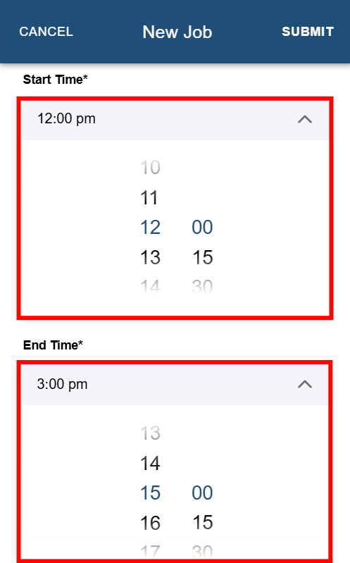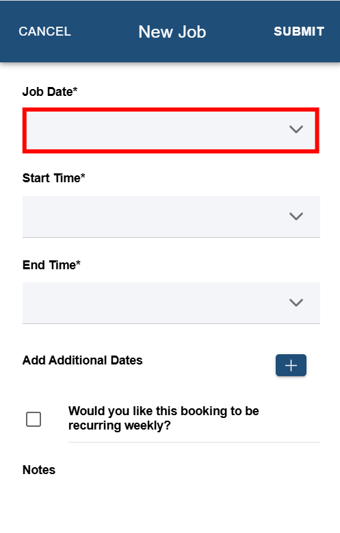 Step 2: Tap the field under Job Date to open the date selection menu.