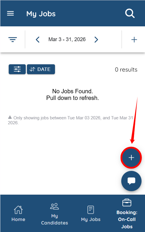 Step 1: Log in to the mobile app and tap the + icon to create a new booking.