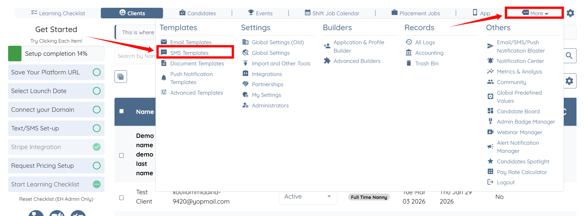 Step 1: Log in to your agent dashboard and click More > SMS Templates, as shown in the screenshot below.