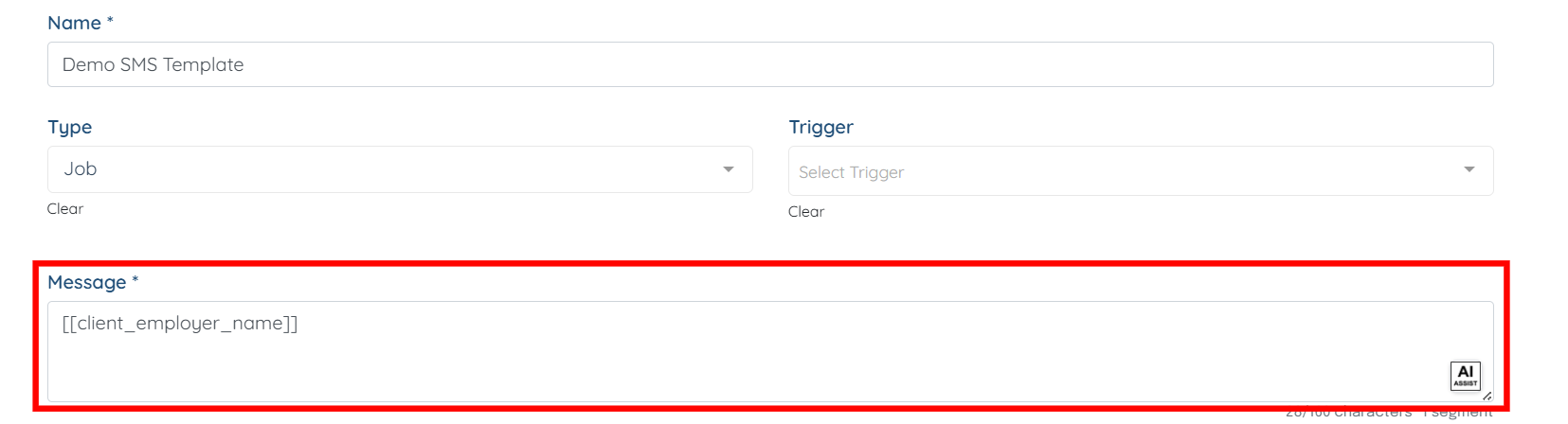 The [[client_employer_name]] tag will be successfully added to the SMS template message.