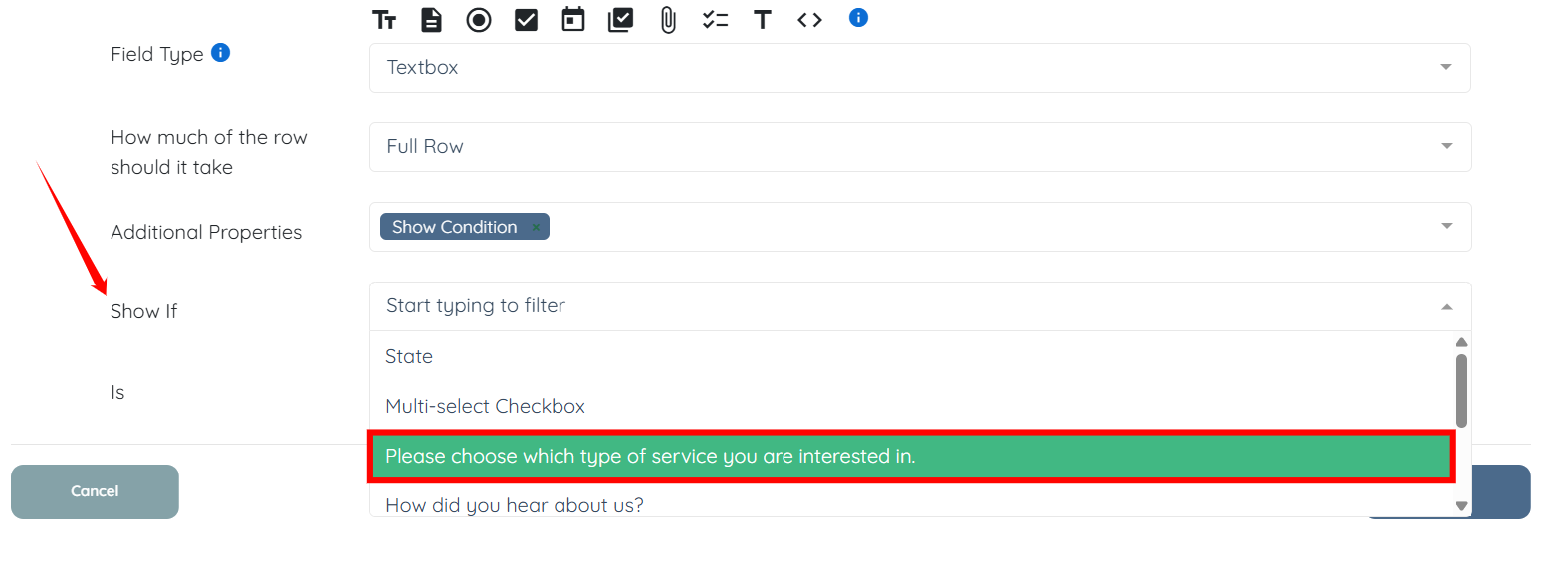 Step 6: Select the appropriate option from the dropdown list for the Show if condition.