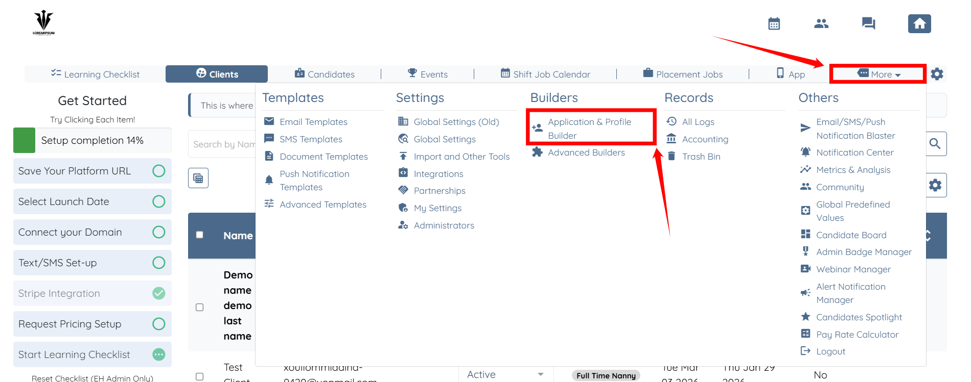 Step 1: Log in to your agent dashboard and click More > Application & Profile Builder as shown in the screenshot below.