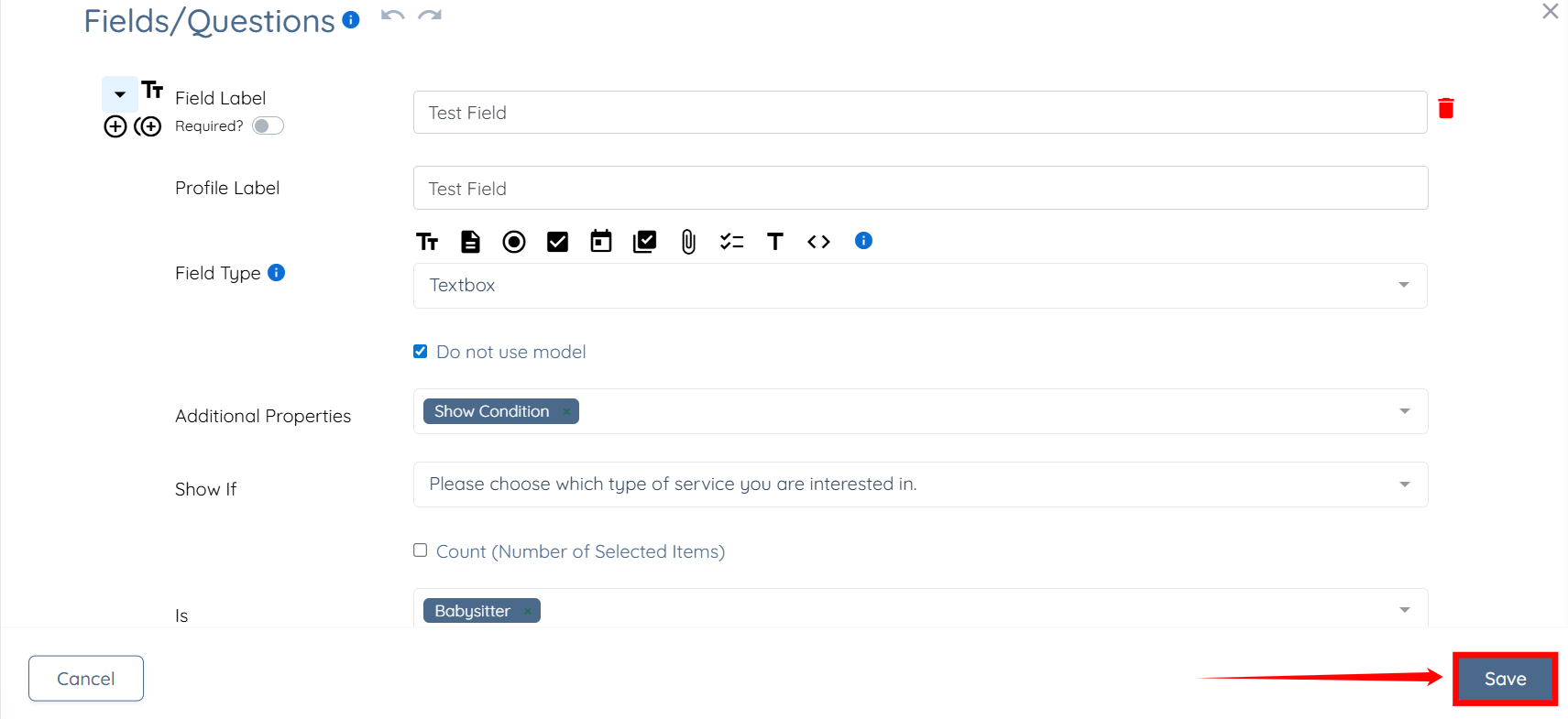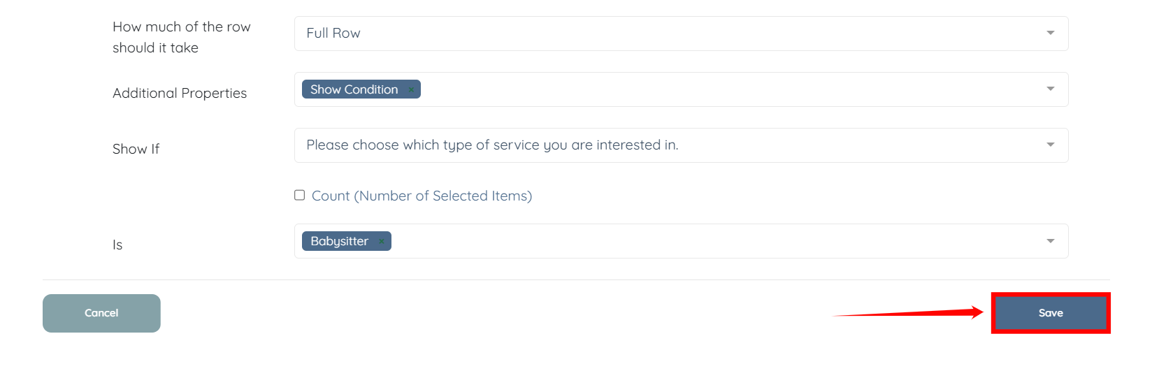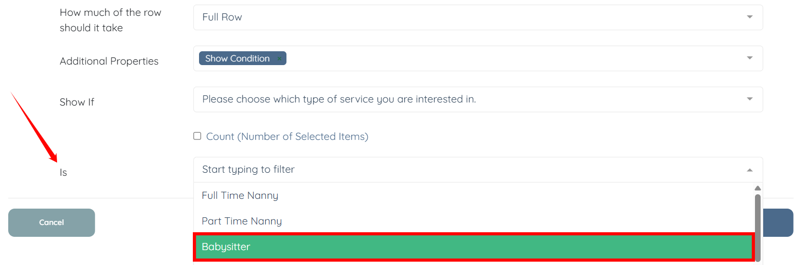 Now, when the user checks the configured option, which is Babysitter in this case.