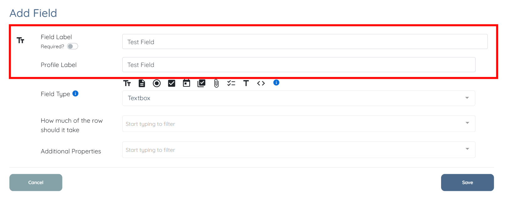 Step 4: Enter the Field Label and Profile Label for the field.
