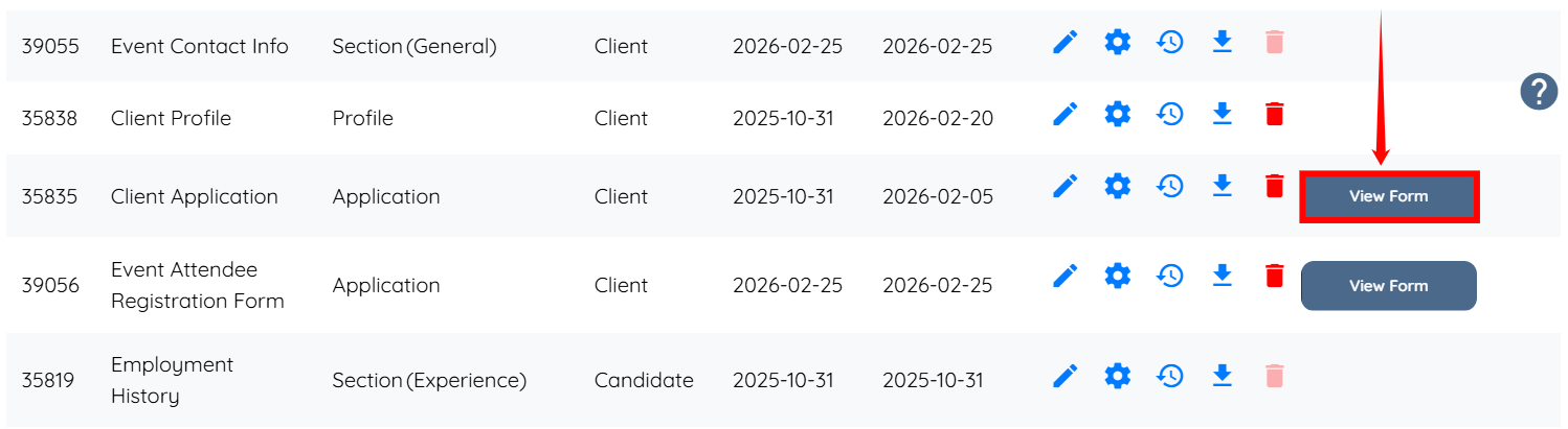 Step 2: Click the View Form button corresponding to the Application Form where you want to configure additional field properties.