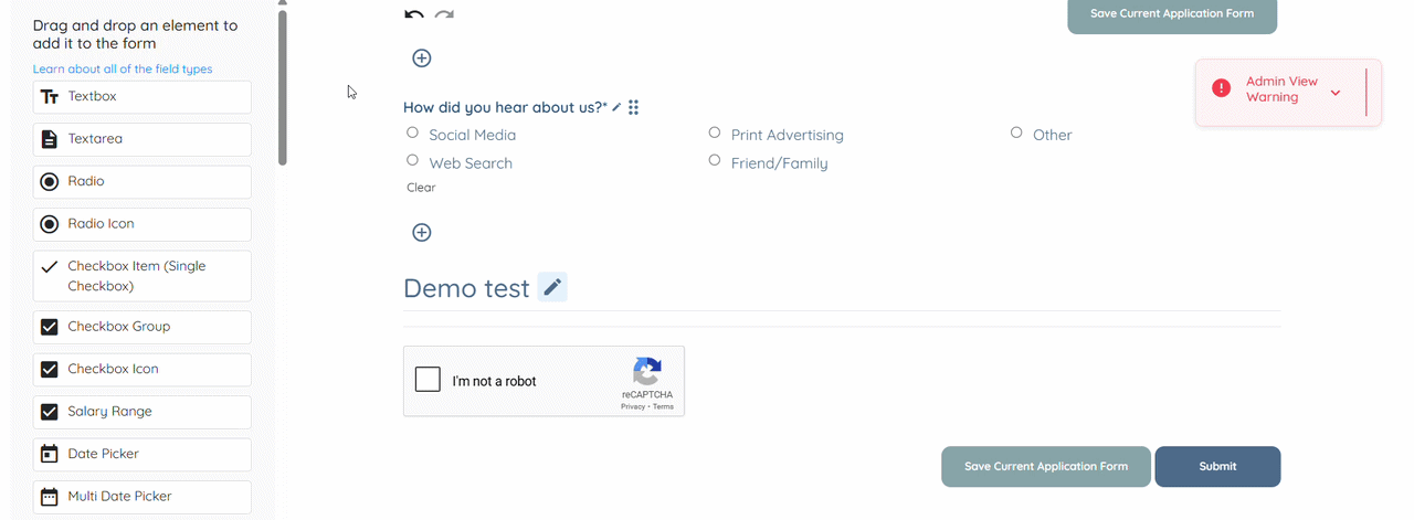 Step 3: Drag and drop the field you want to add into the application form.