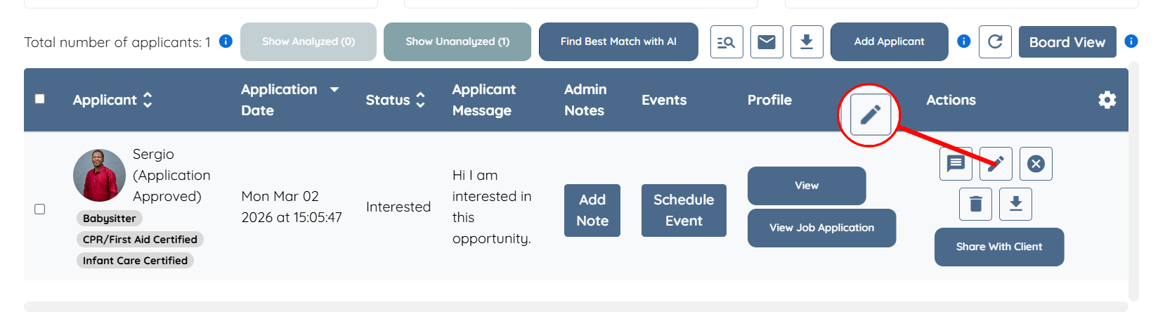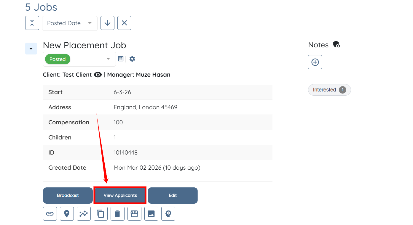 Step 2: Click the View Applicants button for any placement job.