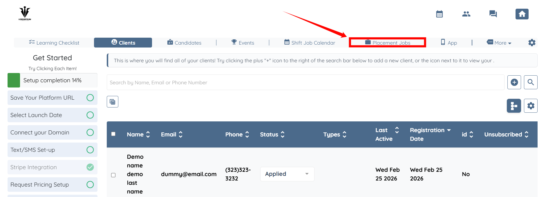 Step 1: Log in to your agent dashboard and click Placement Jobs on the navigation bar.
