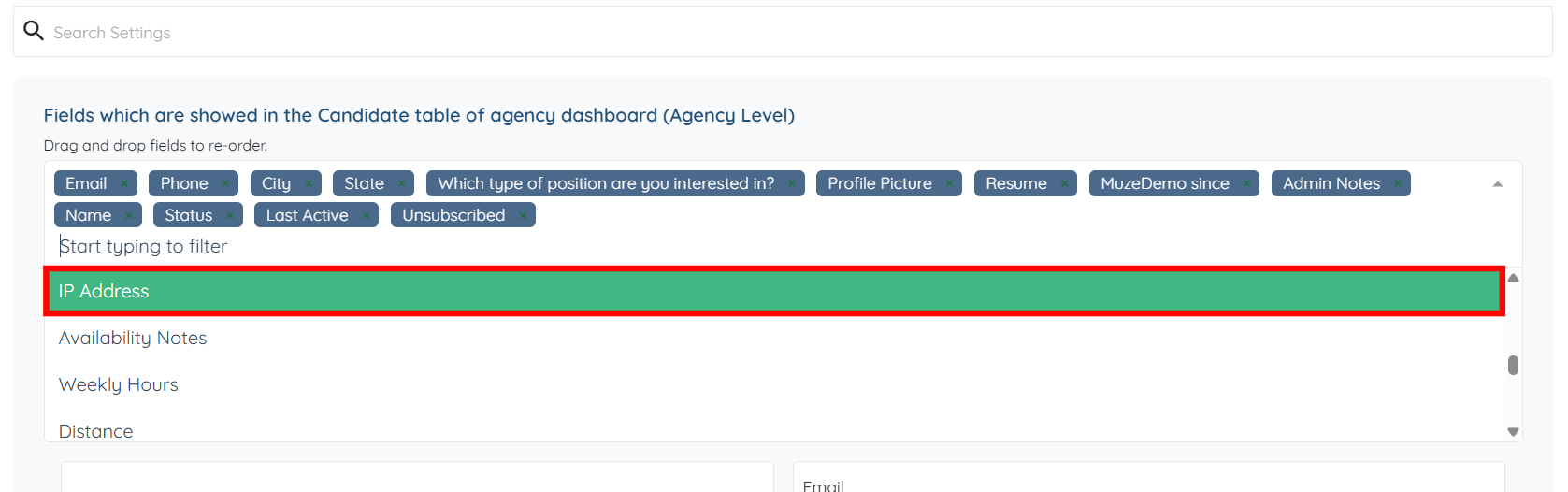 The IP Address field will now appear in the candidate table, and the corresponding IP address values will be displayed for the candidates.