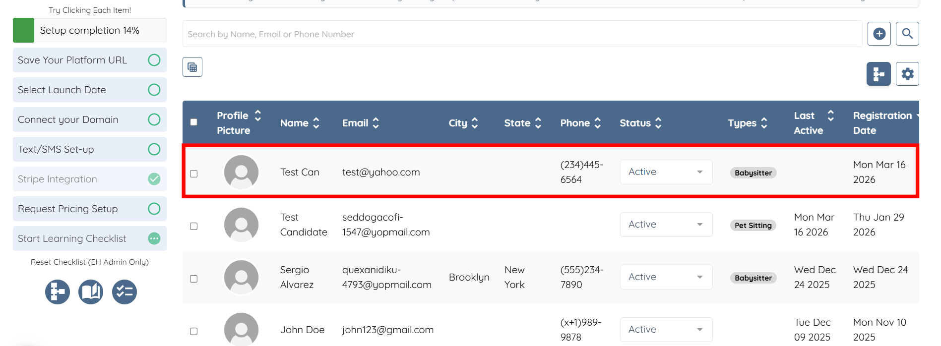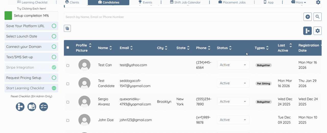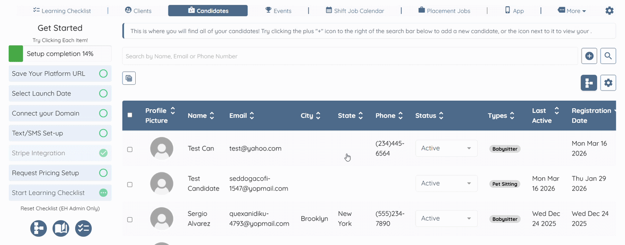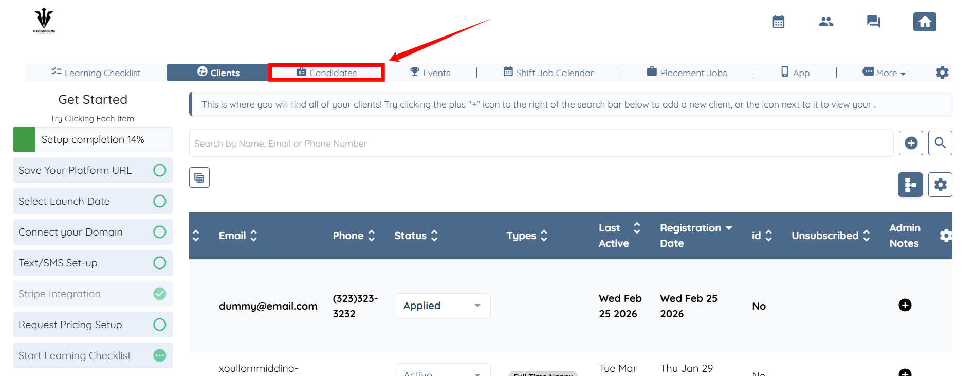 Step 1: Log in to your agent dashboard and click Candidates in the navigation bar.