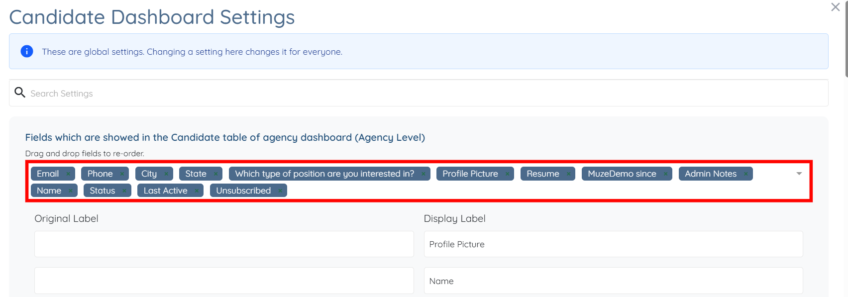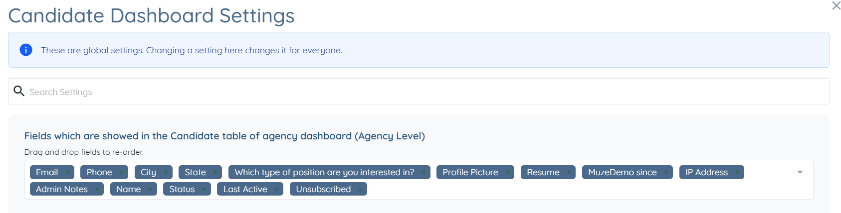 Step 2: Scroll the candidate table to the left and click the Gear icon in the top-right corner of the table header to open the candidate dashboard settings.