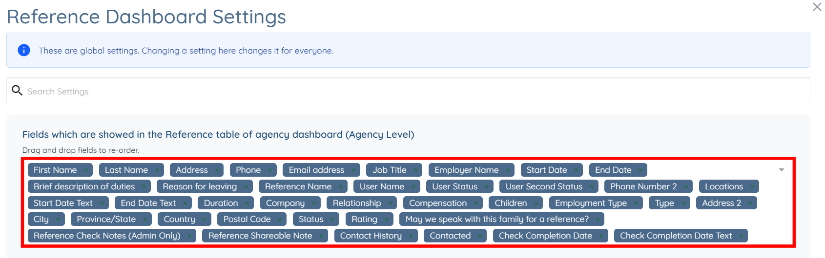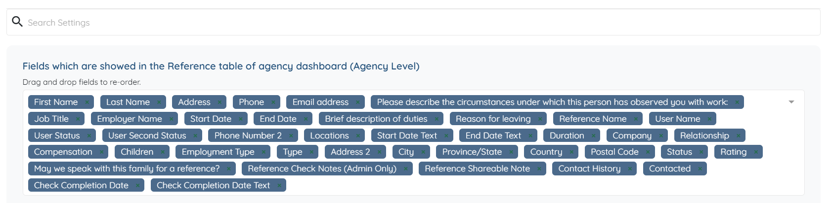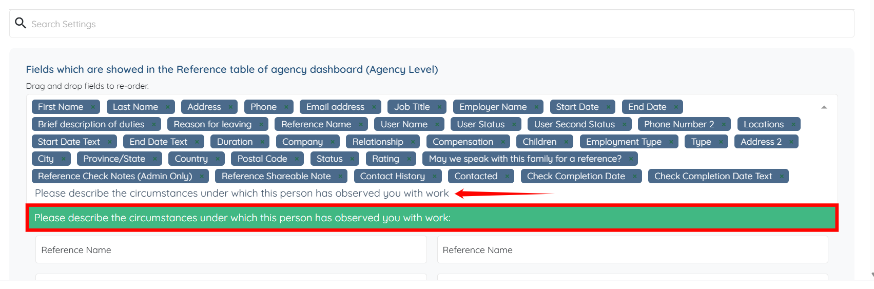 The custom fields that you add from the Employment History section will also successfully appear in the references log table.