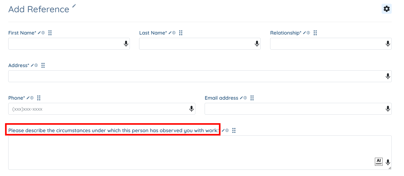 You can add any custom field from the references section to this log table. For example, Please describe the circumstances under which this person has observed you with work