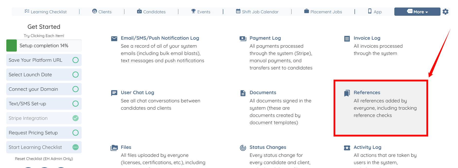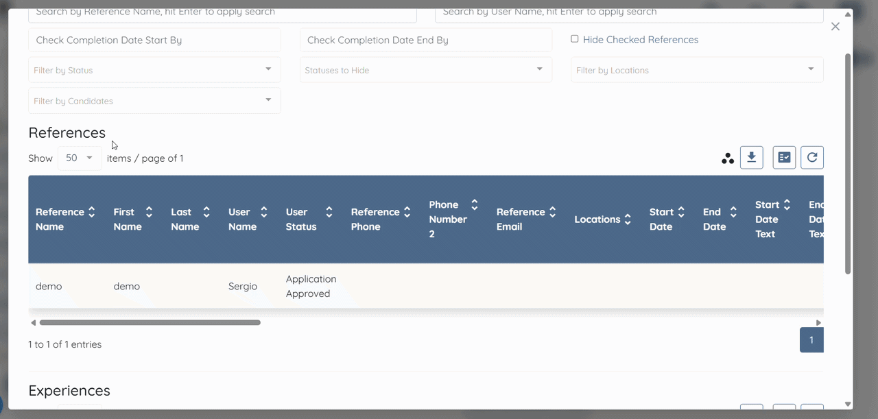 Step 2: Click the References option to view the References and Experiences log tables.