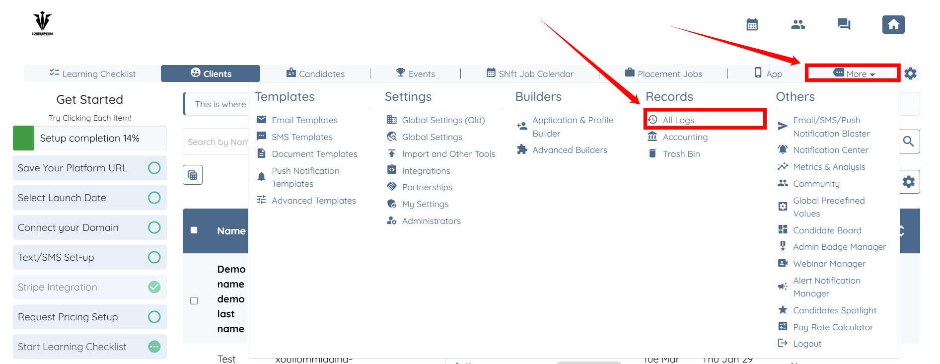 Step 1: Log in to your agent dashboard and click More > All Logs as shown in the screenshot below.