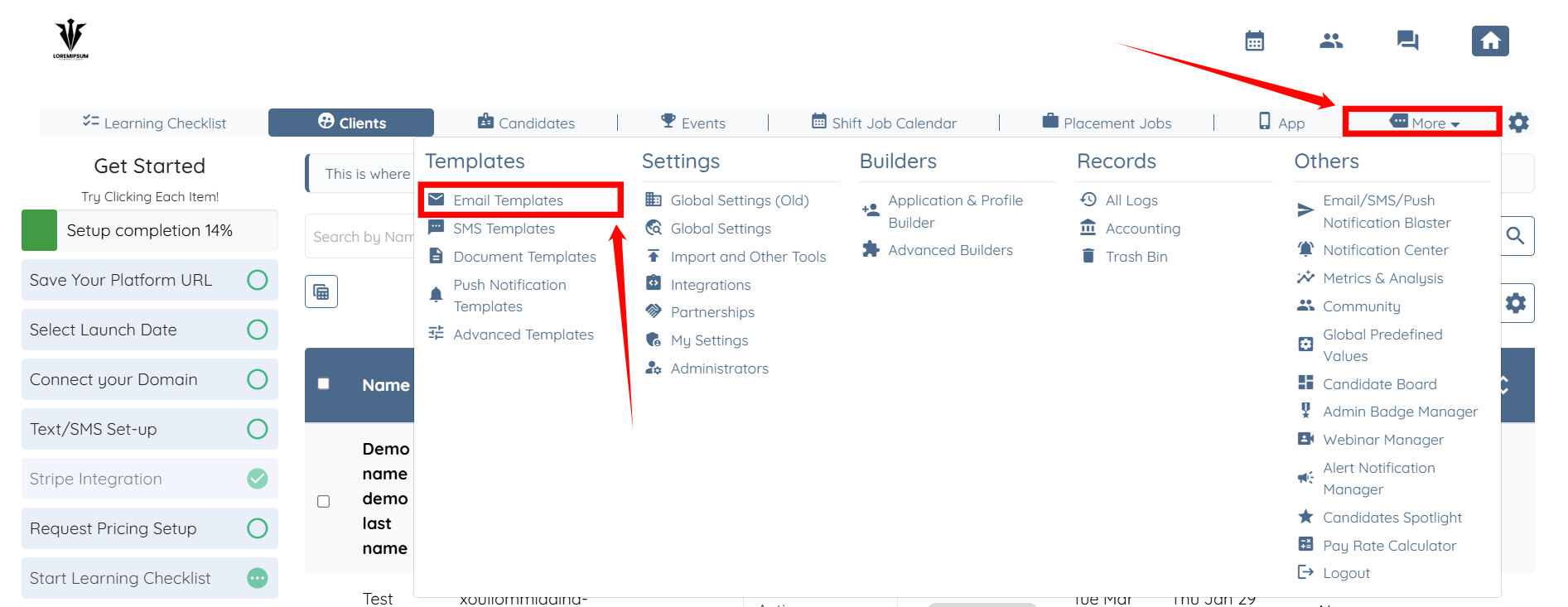 Step 1: Log in to your agent dashboard, then click More > Email Templates, as shown in the screenshot below.